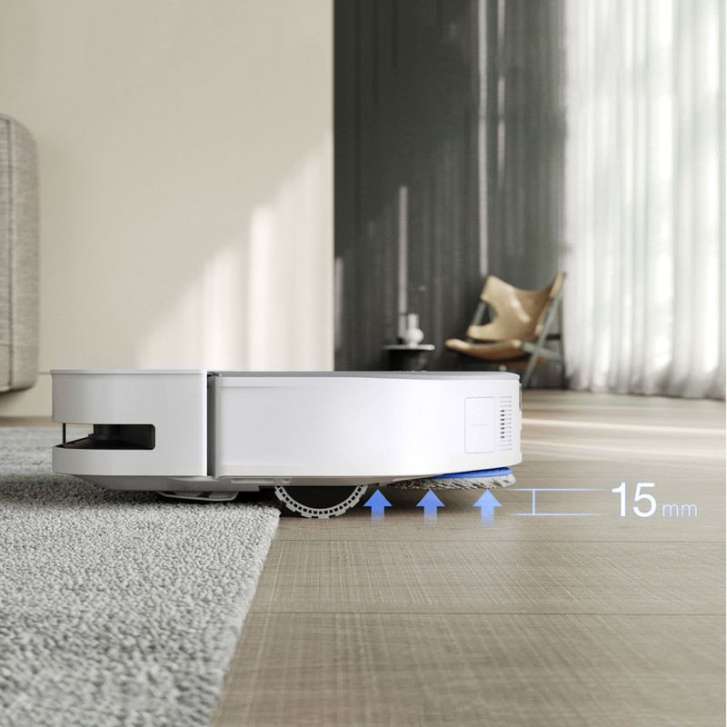 توان مکش، مهمترین عامل در ارزیابی کارایی یک جاروبرقی رباتیک است و اکووکس X5 Pro Omni در این زمینه یک قهرمان واقعی است. با توان مکش خیرهکننده ۱۲۸۰۰ پاسکال، این دستگاه عملکردی فراتر از انتظار را ارائه میدهد که آن را در رده بهترینهای بازار قرار میدهد. این میزان مکش بالا برای جمعآوری انواع آلودگیها از جمله موی حیوانات خانگی، گردوغبار ریز، خردهریزهها و حتی زبالههای بزرگتر از روی تمامی سطوح کاملاً کافی است. این جارو به خوبی روی انواع سطوح مانند پارکت، لمینت، سرامیک و فرش کار میکند و قدرت مکش خود را به صورت خودکار برای هر نوع سطح بهینه میکند. این جارو به یک موتور براشلس (Brushless) مجهز شده که با کارایی بالا، صدای کمی در حدود ۶۸ دسیبل تولید میکند و طول عمر بیشتری دارد. این میزان صدا برای یک جارو با این قدرت مکش، بسیار مناسب و کمصدا محسوب میشود. از دیگر ویژگیهای مهم این مدل، فیلتر خروجی HEPA آن است که ذرات ریز و آلرژنها را جذب کرده و هوایی تمیزتر را به محیط باز میگرداند. این ویژگی برای افرادی که به آلرژی یا مشکلات تنفسی مبتلا هستند، بسیار حائز اهمیت است. گنجایش مخزن زباله ۰.۲۵ لیتری و مخزن آب ۰.۱ لیتری آن برای نظافت روزانه مناسب است و به لطف ایستگاه هوشمند، به صورت خودکار تخلیه و پر میشود. اکووکس X5 Pro Omni قابلیت تیکشی نیز دارد که آن را به یک ابزار دوکاره برای نظافت کامل تبدیل میکند. با استفاده از دو پد موپ چرخشی، این جارو میتواند لکههای سرسخت را نیز از بین ببرد. همچنین، قابلیت نظافت نقاط کنج، این دستگاه را قادر میسازد تا گوشهها و کنارههای دیوار را با دقت بالایی تمیز کند.