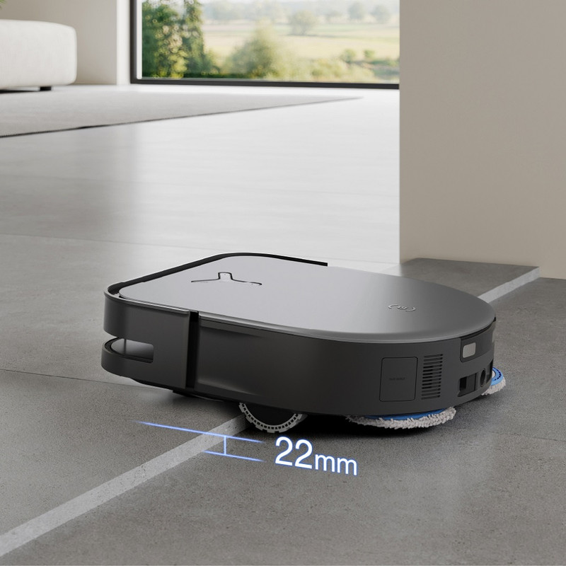 جاروبرقی رباتیک اکووکس X5 Pro Omni با ابعاد ۳۴۶x۳۱۳x۹۵ میلیمتر، طراحی استاندارد و کاربردی دارد که به آن اجازه میدهد به راحتی در زیر مبلمان، تخت و سایر نقاط کمارتفاع حرکت کرده و گردوغبار پنهان را تمیز کند. این ابعاد مناسب، آن را برای فضاهای مختلف ایدهآل میسازد. با وزن ۳۷۰۰ گرم، این جارو وزنی متعادل دارد که نشاندهنده کیفیت ساخت و استحکام بالای آن است. وزن مناسب در کنار طراحی ارگونومیک و وجود سه عدد چرخ، استفاده و مانورپذیری از آن را برای تمامی افراد ساده میکند. این جارو فاقد صفحه نمایش روی خود بدنه است، اما تمامی کنترلها و تنظیمات آن از طریق اپلیکیشن موبایل قابل انجام است. همچنین، وجود پنل لمسی روی دستگاه، استفاده از آن را بدون نیاز به اپلیکیشن، آسانتر میکند. یکی از ویژگیهای برجسته این محصول، ایستگاه شارژ بزرگ و چندکاره آن با ابعاد ۴۴۳x۳۹۴x۵۲۷.۵ میلیمتر است. این ابعاد نشاندهنده تواناییهای پیشرفته این ایستگاه است که فراتر از یک پایه شارژ ساده عمل میکند و به عنوان یک مرکز فرماندهی کامل برای تمامی فرآیندهای نظافتی شناخته میشود.