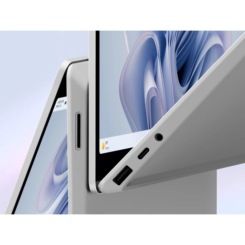 لپتاپ مایکروسافت Surface Go 3 با نمایشگر ۱۲.۴ اینچی PixelSense و طراحی مینیمال، برای کارهای روزمره و مالتیمدیا مناسب است. این دستگاه با وزن سبک ۱.۱۲ کیلوگرمی و ضخامت ۱۵.۷ میلیمتری، همراهی ایدهآل برای استفاده روزانه و جابهجایی است. بدنه آلومینیومی آنودایز شده و استفاده از مواد بازیافتی، استحکام و زیبایی خاصی به آن میبخشد. کیبورد جزیرهای و تاچپد چند لمسی، تجربه کاربری راحتی را برایتان فراهم میکنند. اسپیکرهای Omnisonic با فناوری Dolby Audio Premium، کیفیت صدای بالایی را ارائه میدهند و دوربین HD 720p برای تماسهای ویدیویی مناسب است. از دیگر امکانات این لپتاپ، میتوان به سنسور اثر انگشت روی دکمه پاور با پشتیبانی از Windows Hello و میکروفونهای Dual Far-Field اشاره کرد. این لپتاپ به پردازنده نسل ۱۲ اینتل، مدل Core i5-1235U اینتل با ۱۰ هسته و حداکثر فرکانس ۴.۴ گیگاهرتز مجهز است. پردازنده گرافیکی اینتل Iris Xe عملکرد قابل قبولی در کارهای گرافیکی سبک از خود نشان میدهد. رم LPDDR5 با سرعت ۵۲۰۰ مگاهرتز و حافظه داخلی SSD M.2 NVMe، سرعت خوبی به دستگاه میبخشند و حافظه داخلی قابلیت ارتقا دارد. نمایشگر لمسی براق با محافظ Corning Gorilla Glass 3، تصاویر را با کیفیت مناسبی نمایش میدهد. همچنین این لپتاپ با باتری ۴۰-۴۱ واتساعتی میتواند تا ۱۵ ساعت شارژدهی داشته باشد. لپتاپ Surface Go 3 برای کاربران نیمهحرفهای و دانشجویان، انتخابی جذاب و مناسب است.