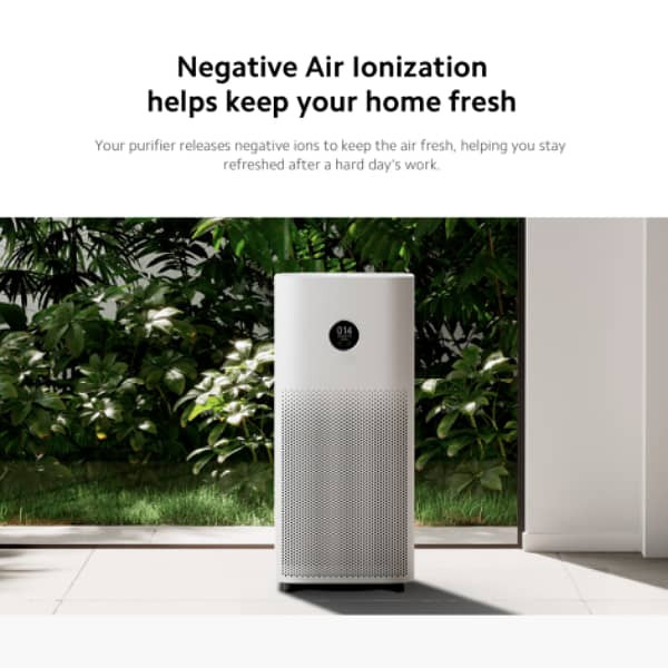 طراحی مینیمال و مدرن با قابلیت جابجایی آسان، عملکرد 360 درجهای، موتور بهینه با صدای بسیار کم، سیستم فیلتر سه گانه با حذف 99.97 درصدی ذرات 0.3 میکرومتری، حذف بوهای نامطبوع، ذرات آلاینده و گازهای مضر از هوا، نمایشگر لمسی و طول عمر بالای فیلتر از مزایای شیائومی Air Purifier 4 است.دستگاه تصفیه هوا شیائومی Smart Air Purifier 4 از فرم مکعب مستطیلی با لبههای انحنادار بهره میبرد. استفاده از رنگ سفید و طراحی مینیمال، به محصول ظاهری مدرن داده است. ابعاد دستگاه معادل 250 در 250 در 555 میلیمتر است و به لطف وزن سبک، کاربر به راحتی میتواند این دستگاه تصفیه هوا را در نقاط مختلف خانه یا محل کار جابجا کند.بدنه دستگاه از پلاستیک ABS ساخته شده است که در برابر شرایط محیطی و تغییرات دما، مقاومت بسیار خوبی دارد. همچنین درب پشتی دستگاه که امکان دسترسی به فیلترها را میسر میکند به صورت مغناطیسی قابل باز و بسته شدن است.دستگاه تصفیه هوا شیائومی Smart Air Purifier 4 از وایفای داخلی برخوردار است و توانایی اتصال به سایر دستگاههای هوشمند مانند گوشی موبایل را دارد. با استفاده از اپلیکیشن Mi Home میتوانید وضعیت دستگاه را به طور لحظهای مشاهده و کنترل کنید. این اپلیکیشن همچنین امکانات بسیار خوبی مانند قفل کودک، تایمر و عمر باقیمانده فیلتر را در دسترس قرار میدهد.برای راحتی هر چه بیشتر، این تصفیه کننده هوا از کنترل صوتی نیز پشتیبانی میکند. این دستگاه با آمازون الکسا و گوگل اسیستنت سازگاری دارد و کاربر میتواند با استفاده از فرمانهای صوتی، عملکرد دستگاه را کنترل کند،به لطف بهرهگیری از موتور قدرتمند و بهینه، عملکرد دستگاه تقریبا بی صدا است و در حالت Night Mode میزان صدای دستگاه به 32.1 دسیبل میرسد .سیستم فیلتراسیون شیائومی Air Purifier 4 شامل سه بخش است و توانایی حذف 99.97 درصدی ذراتی به کوچکی 0.3 میکرومتر را دارد. موی حیوانات خانگی، ذرات آلاینده، گرد و خاک، دود سیگار، شوره و الیاف پنبه همگی توسط این سیستم از هوای محیط حذف میشوند.دستگاه تصفیه هوا شیائومی Smart Air Purifier 4 از CADR یا نرخ تولید هوای تمیز 400 متر مکعب در ساعت بهره میبرد.