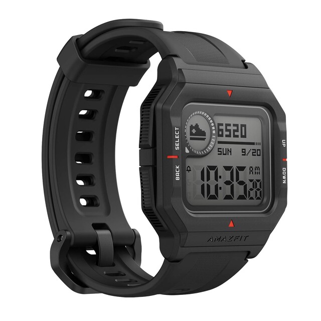 یکی از شرکت های زیرمجموعه کمپانی شیائومی ، شرکت Huami است که سری ساعت های Amazfit را تولید می کند و تنوع خوبی هم در این حیطه دارد. این شرکت در تولید محصولات خود، ابتکارات مختلفی را نیز در نظر داشته و در ساخته های خود اعمال می کند و در مواردی می توان گفت که حتی ریسک می نماید تا محصولی متفاوت را خلق و ایجاد کند. یکی از همین ساعت های هوشمند ، ساعت هوشمند شیائومی Xiaomi Huami Amazfit Neo است که طراحی بسیار جذاب و نوستالژیکی دارد. اما برای همین ساعت هم با طراحی خاص خود امکاناتی در نظر گرفته شده است که می توانید با در نظر گرفتن آن ها، Amazfit Neo را به یک گزینه اصلی برای انتخاب خود تبدیل نمایید. در ابتدا و تنها با دیدن طراحی و ظاهر این ساعت، شکل و شمایل ساعت های قدیمی برای شما یادآوری می شود. بیشتر این فرم از طراحی بدنه را با ساعت های Casio می شناسیم که بسیاری از افراد از آن ها استفاده می کردند. اما Amazfit Neo ساعتی هوشمند را در قالب و بطن این ظاهر نمایان ساخته است که شما می توانید به خوبی آن را ببینید و این حس را از ساعت دریافت کنید. صفحه نمایش STN Monochrome ساعت Amazfit Neo دارای ابعاد 1.2 اینچی است و حالت Always On دارد تا بتوانید در هر زمانی که خواستید از زمان و اطلاعات دیگر مطلع شوید. این نمایشگر به خوبی در نور آفتاب نیز قابل مشاهده است و می توانید آن را مشاهده کرده و اطلاعاتش را نیز ببینید. خواندن این صفحه نمایش تنها در حالتی برای شما کمی دشوار است که در تاریکی بیش از حد باشید که باز در این حالت نیز می توانید از نور پس زمینه ای که برای آن در نظر گرفته شده است استفاده نمایید و آن را ببینید. عرض بند نیز برابر با 20 میلی متر است که می توانید با در نظر گرفتن آن محدوده پوشش ساعت روی دست خود را تخمین بزنید و در نظر بگیرید. از دیگر ویژگی های Amazfit Neo اعلام پیام ها و تماس به شما است که می توانید از این طریق مطلع شده و تماس یا پیامی را از دست ندهید. این مورد برای شما ویبره ایجاد نمی کند و با صدا به شما پیام ها را اعلام می کند. این امر تا حدودی در کمتر مصرف شدن باتری نیز کمک می کند و مؤثر است. اپلیکیشن مورد نیاز برای کار با این ساعت، نرم افزار Zepp App بوده و با استفاده از آن می توانید به تمام امکانات ساعت دسترسی داشته باشید و آن ها را کنترل و تنظیم نمایید